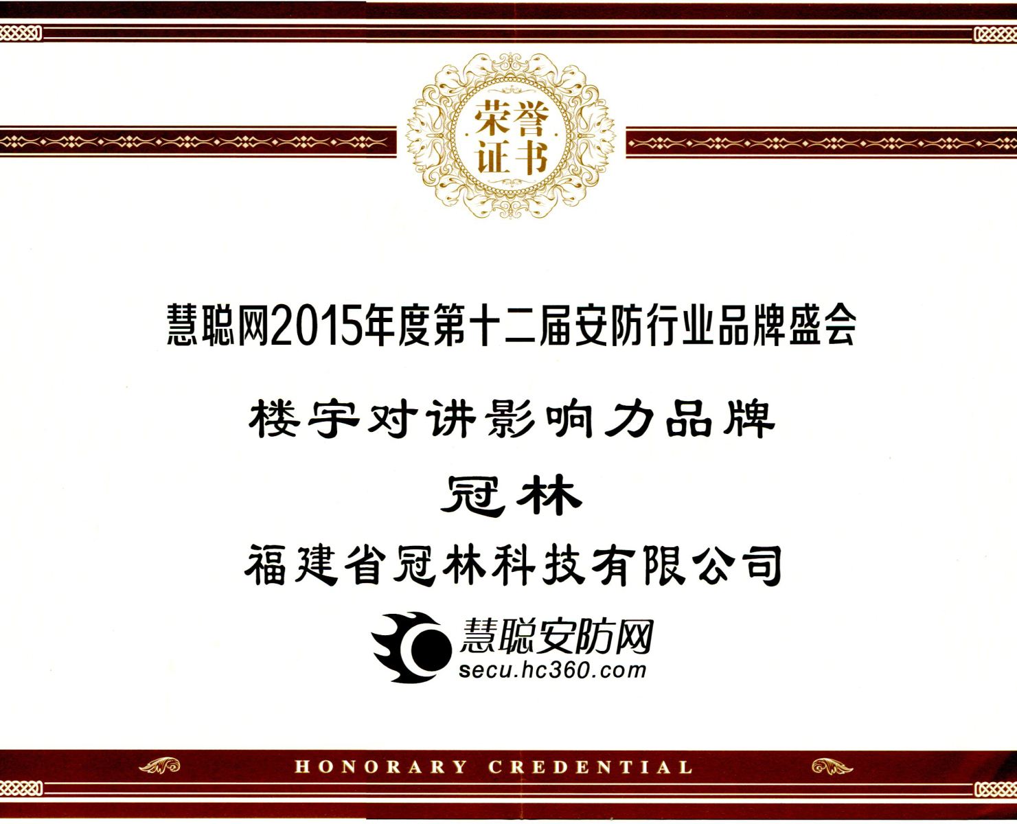 2015第十二届中国安防高峰论坛暨行业品牌盛会颁奖典礼上,冠林凭借着在广大消费者当中良好的口碑以及强大的品牌影响力从几百家企业中脱颖而出,成功荣获“楼宇对讲影响力品牌奖”。