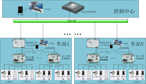 门禁系统(ACS)实现对车站、车辆段和主变电所设备和管理用房、出入口、票务室等重点区域的自动化出入管理、登记功能,以及车站、主变电所考勤管理功能。门禁系统主要由服务器、门禁控制器、前端设备(门禁点控制器、读卡器、门磁、电控锁)及相关软件构成。
