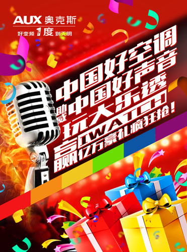 当前随着第四季《中国好声音》火热开播,这在掀起一股全民娱乐的高潮之际,由空调巨头奥克斯打响的好声音大乐透活动也如期打响,开创了一场空调业跨界娱乐营销的先河,更让消费者持续感受到来自空调企业年轻化、时尚化、品质化的形象。