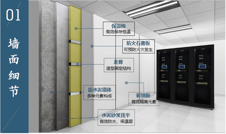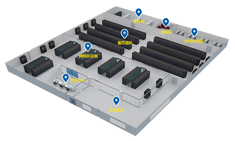 服务器区:存储大型机以及刀片服务器,冷通道提高制冷效率,节约电能