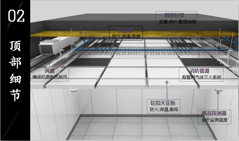 服务器区:存储大型机以及刀片服务器,冷通道提高制冷效率,节约电能